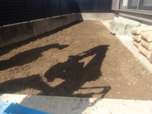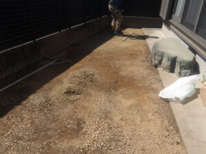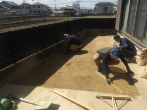 砂で敷き均して、下地整地は完了となります。