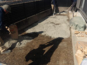 人工芝を設置するための下地整地となります。