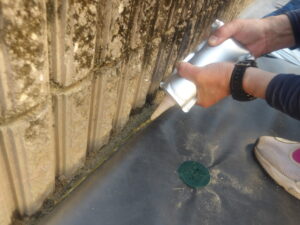 ブロック塀の箇所は、ボンドやコーキングを行い、隙間を埋めていきます。