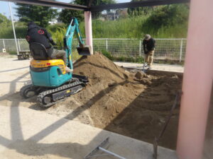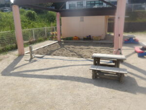 砂場も大きく、砂を集める際には、重機を中に入れて寄せております。