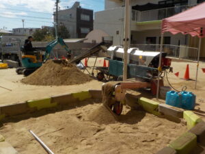 夏場に水遊びをしていた事もあり、砂はベタベタから乾いてカチカチに。