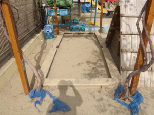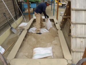 今回は加熱殺菌した砂を持っていき、入っている分との入れ替え作業となります。