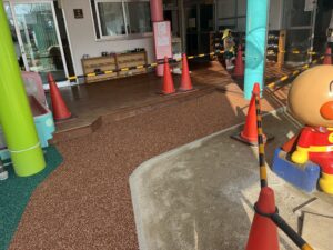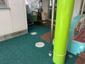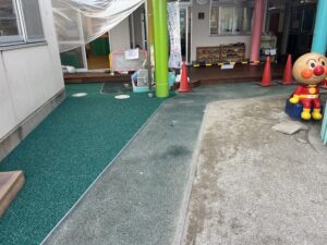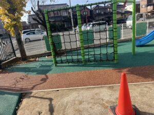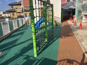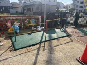 遊具のある方も、ゴムチップを敷き入り口から段差がないようにしております。