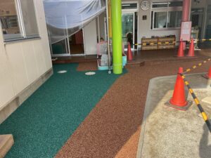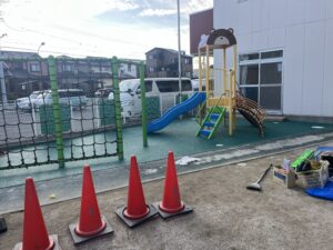前回、今まであったゴムチップを撤去し、下地工が完了しました。