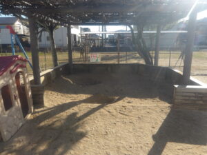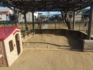 三方を高さのある木枠で囲んでいるので