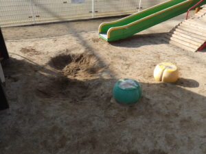 2枚目の砂場がいっぱいになってきたら順次、1枚目の砂場に入れていきます。