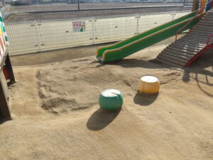 砂場は2つあり、それぞれ遊具の先にある形になります。